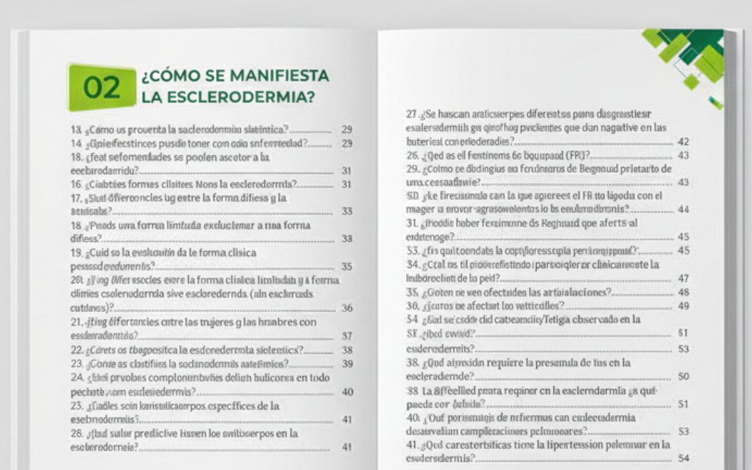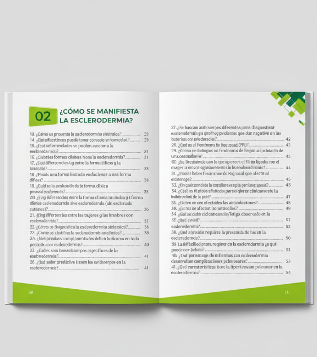 • Guía “100 Preguntas sobre Esclerosis Sistémica” para pacientes y familiares.